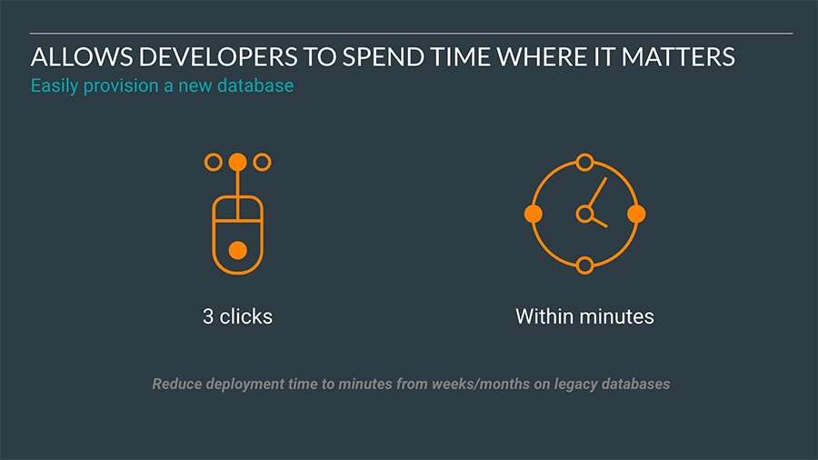 Cloudera Operational Database simplifies the process of deploying a database. Developers can easily provision a new database within minutes and start building applications.
